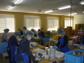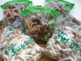 収穫したしめじを新鮮なうちに、株・カットしめじに処理をして包 装し発送します。